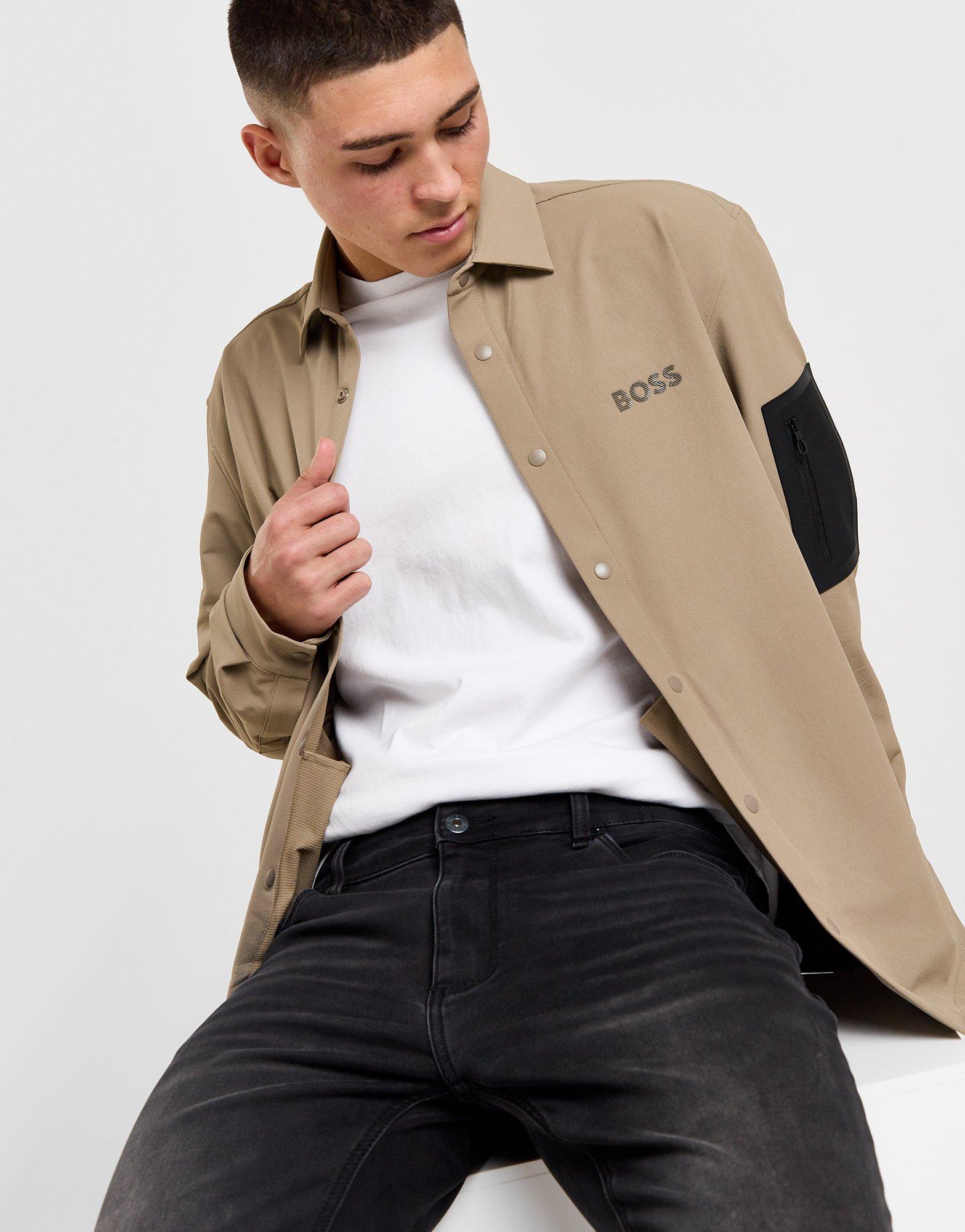 Ponte una prenda de primera calidad con esta camisa con bolsillos en las mangas para hombre de BOSS. En color caqui, esta camisa de corte estándar está confeccionada con un tejido de algodón suave para una comodidad diaria. Cuenta con un frente con botones a presión para una cobertura personalizada y puños abotonados para que puedas ajustar el ajuste. Con bolsillos laterales con cremallera y una bolsa con cremallera en la manga para guardar cosas, esta camisa está rematada con la clásica marca BOSS. Lavable a máquina | Nuestro modelo mide 1,80 m, tiene 96 cm de pecho y lleva una talla mediana.