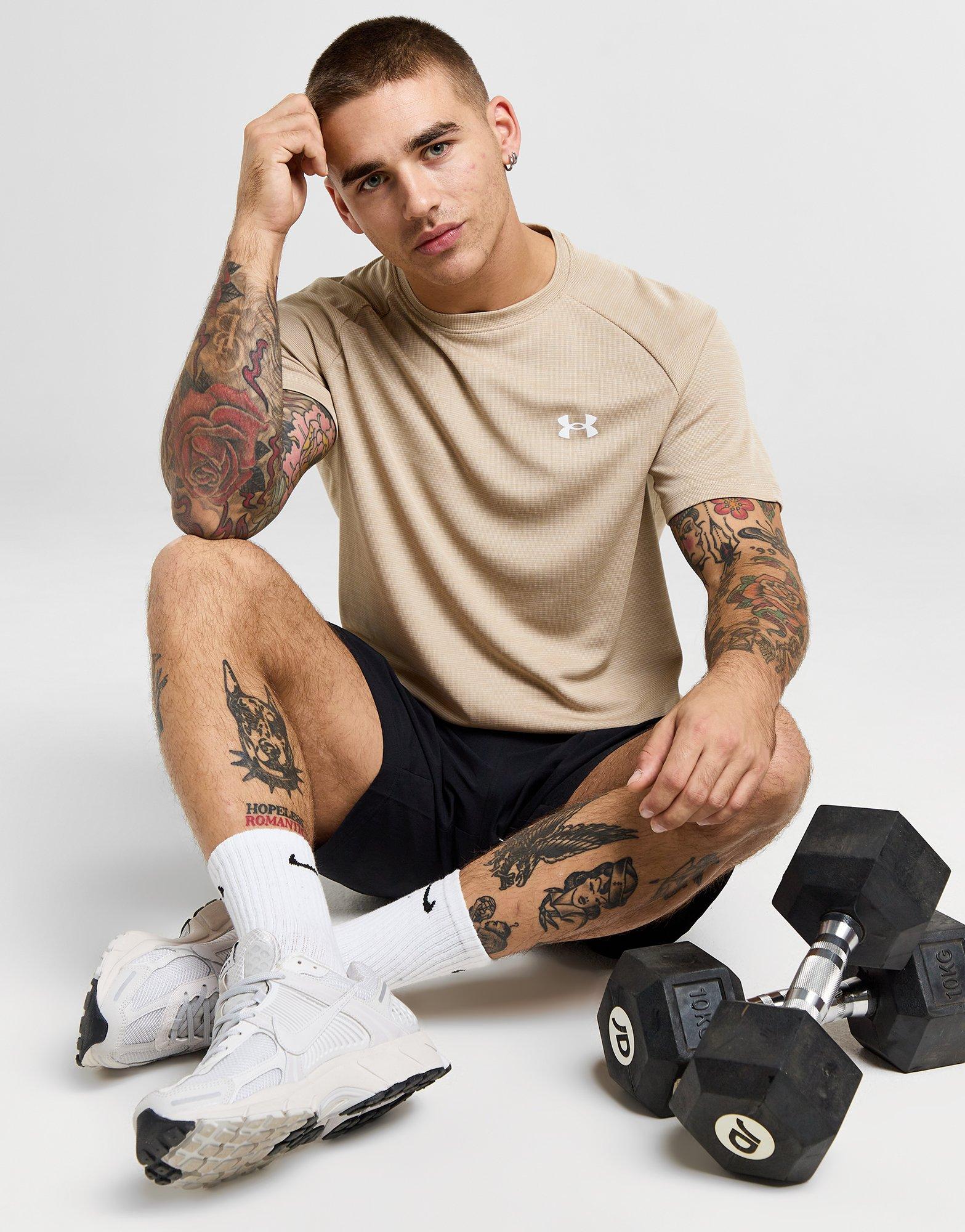 Mantente fresco cuando entrenes con esta camiseta Texh Texture de Under Armour para hombre. En color Stone, esta camiseta holgada está confeccionada con tejido UA Tech suave, de secado rápido y tacto natural. Tiene cuello redondo y mangas cortas de corte raglán. Está rematada con el Badge de Under Armour en el pecho y la nuca. Se puede lavar a máquina. Nuestro modelo lleva una talla mediana.