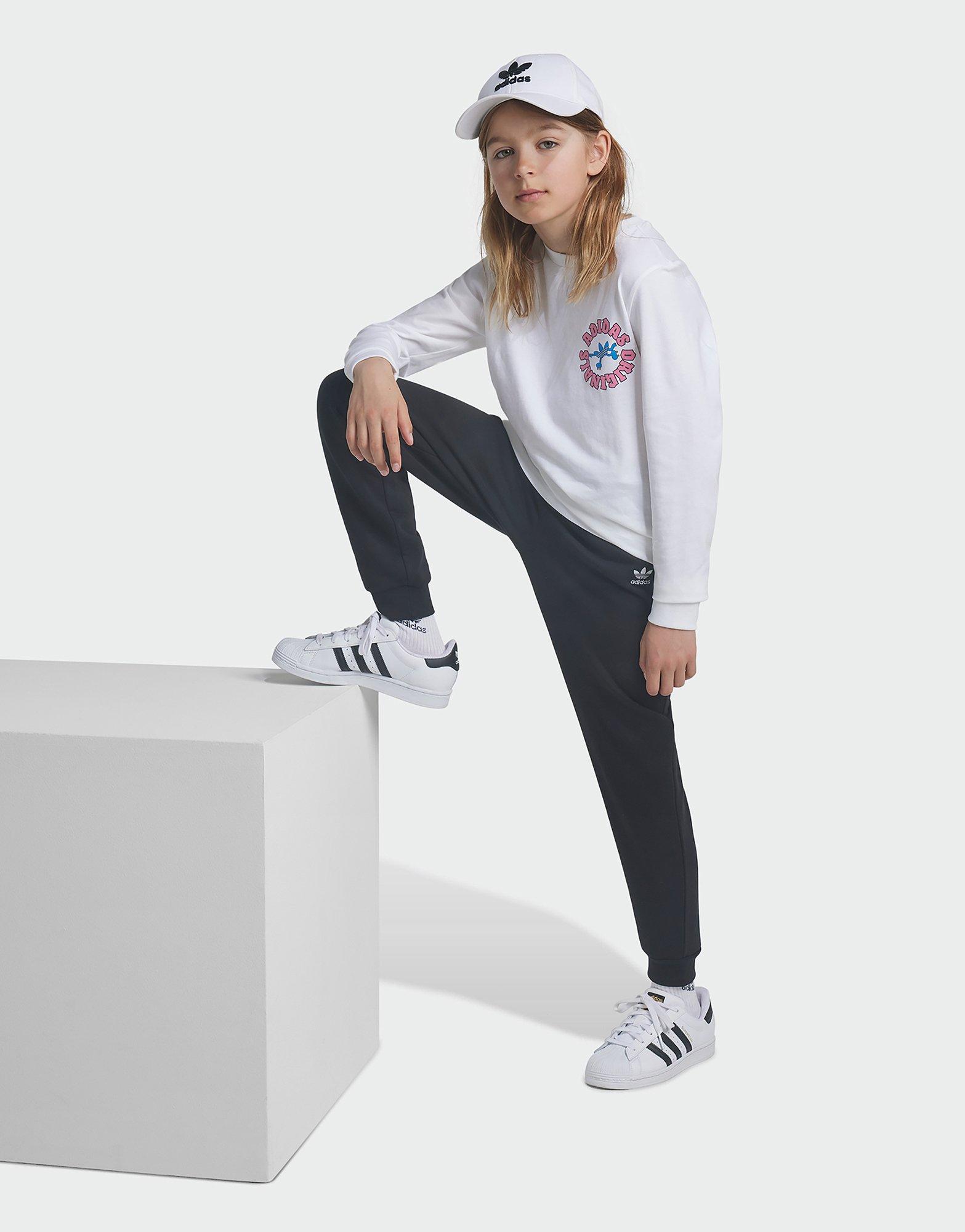 Tan cómodos que no querrás quitártelos. Estos pantalones adidas para jóvenes están confeccionados en felpa suave y cuentan con una cintura elástica con cordón ajustable. El logotipo del trébol bordado y los puños de canalé hacen de esta prenda básica una declaración de estilo.