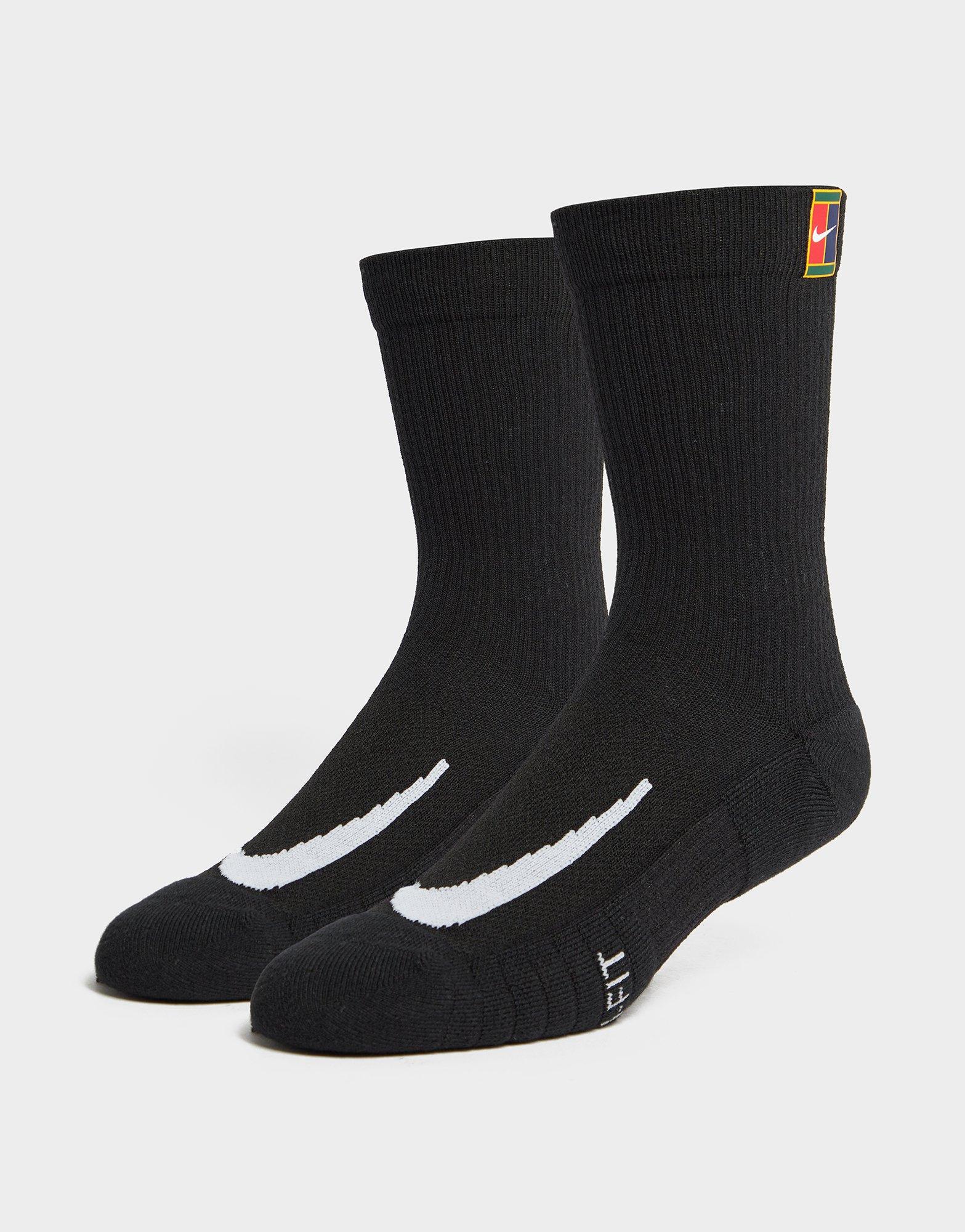 Sube de nivel tus básicos con este paquete de 2 calcetines Crew Court Heritage de Nike para hombre. En una combinación de colores negros, estos calcetines largos están confeccionados con algodón suave y elástico, con tecnología Dri-FIT que absorbe el sudor para brindar una comodidad fresca. Cuentan con amortiguación adicional en áreas de alto desgaste, así como soportes de banda para el arco para un paso estable. Estos calcetines están rematados con logotipos de Swoosh y la insignia icónica de la Corte en la parte superior. Lavable en la lavadora.