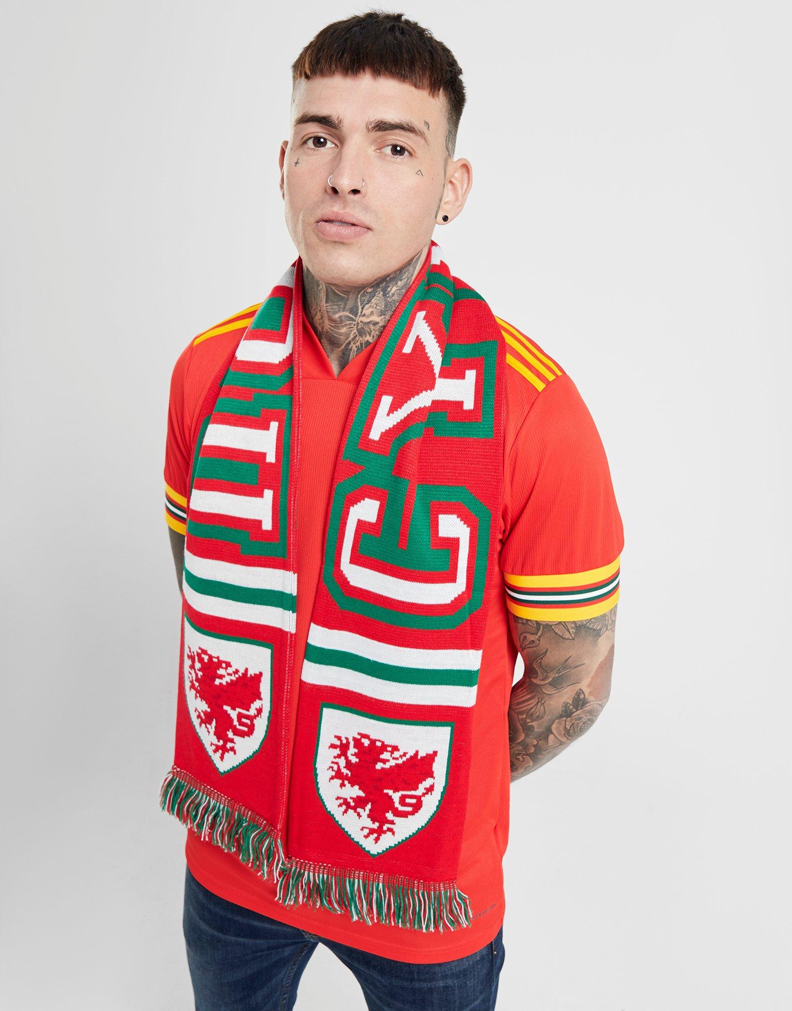 Cualquier hincha que se precie, ¡lleva los colores de su equipo en el día a día! Esta bufanda de Official Team llega con los de la selección de Gales, rojo, blanco y verde, para que puedas abrigarte o llevarla a los partidos para vibrar con tu equipo. Es de tejido acrílico con flecos en los extremos, y está decorada con el escudo de la selección de Gales en ambos extremos.