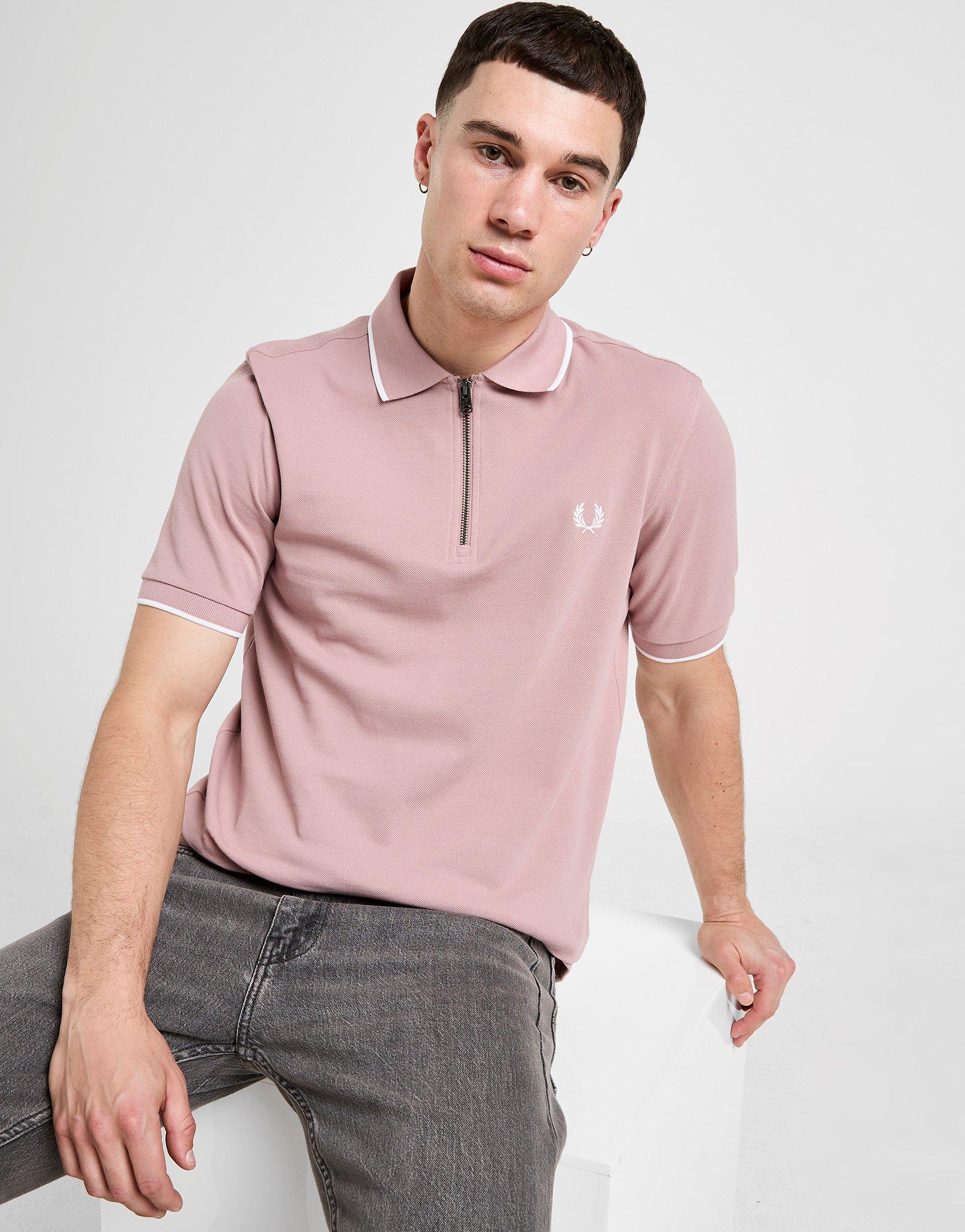 Apuesta por un estilo clásico y elegante con este polo con cremallera para hombre de Fred Perry. En color rosa y blanco, esta prenda exclusiva de JD está confeccionada en un tejido de algodón suave y ligero para una mayor comodidad. Cuenta con mangas cortas, cuello abierto y cierre con cremallera para un ajuste personalizado. Acabado con el icónico logo Laurel Wreath en el pecho. Lavable a máquina. Nuestro modelo mide 1,83 m, tiene un pecho de 96,52 cm y lleva una talla M.